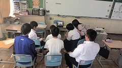 小学校とンラインで交流しました。自分たちのことについて紹介しあいました。丁寧に自分のおもいを伝えることができました。