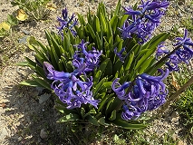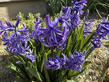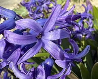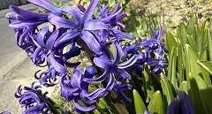 この花はヒヤシンス(風信子)と思われます。開花期は3~4月頃です。品種は一重咲きや八重咲き、ミニタイプなど豊富です。花色も青、ピンク、白、紫など多彩です。草丈は20~30cmほどで、株元から肉厚な葉が放射状に伸び、中央からしっかりとした花茎が立ち上がります。甘く芳醇な香りを漂わせます。原産地は地中海東部沿岸と考えられています。