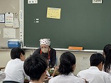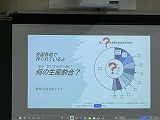 地産地消をテーマにお話をしていただきました。地産地消のいいところは、新鮮な旬の食材が食べられることや地域経済の活性化につながることや生産者の顔が見えるので安心感があるなどを学習しました。また学校の給食でも大豆やお米など三重県産を使っていることを教えていただきました。