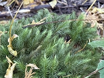 里山の奥に灰緑色の苔を見つけました。
