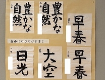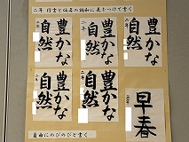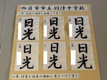 三泗書写展に羽津中学校の代表の作品が展示されていました。