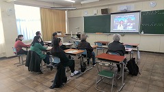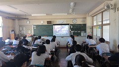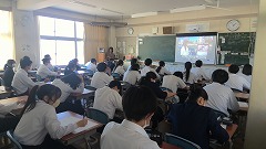 ヒロシマ「」継ぐ展実行委員会のみなさんを講師としてお招きし、オンラインで人権平和学習を行いました。3年生の生徒教員だけでなく地域の方も参加されみんなで学習しました。