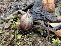 散歩していると土の中から丸くとびだしているものを見つけました。