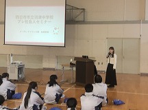 メーテレのアナウンサーの方を講師としてお招きしまた。アナウンサーの仕事の内容や楽しさやや難しさを買っていただきました。「話すときは特にアクセントに気をつけて話しています。」といつも大事にしていることを教えてもらいました。みんなが普段感じられないことを教えていただき本当にありがとうございました。