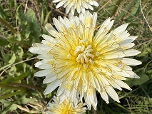 この花はシロバナタンポポ(白花蒲公英)と思われます。日本在来種です。2~5月にかけて白い花をつけます。