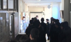 生徒会執行部さんよりプロジェクターを使っての学校紹介や生徒会スローガンの披露がありました。その後上級生による校歌披露を行いました。