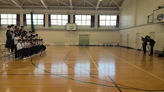 体育館でクラス写真をとりました。はじめ緊張してましたが、写真屋さんの声掛けでみなさん表情がすごくやわらいでいました。