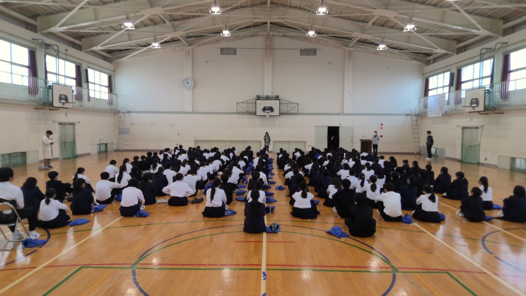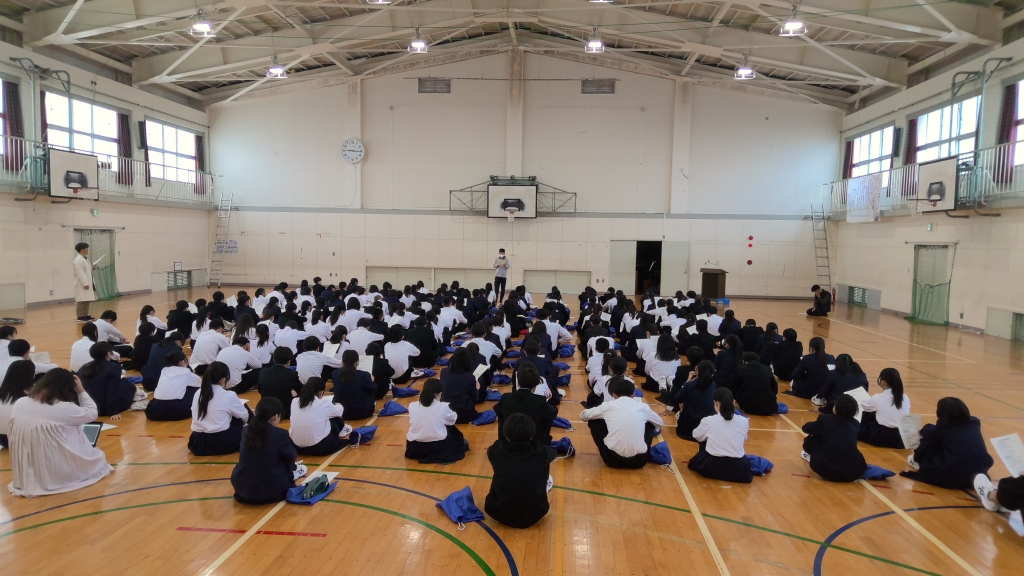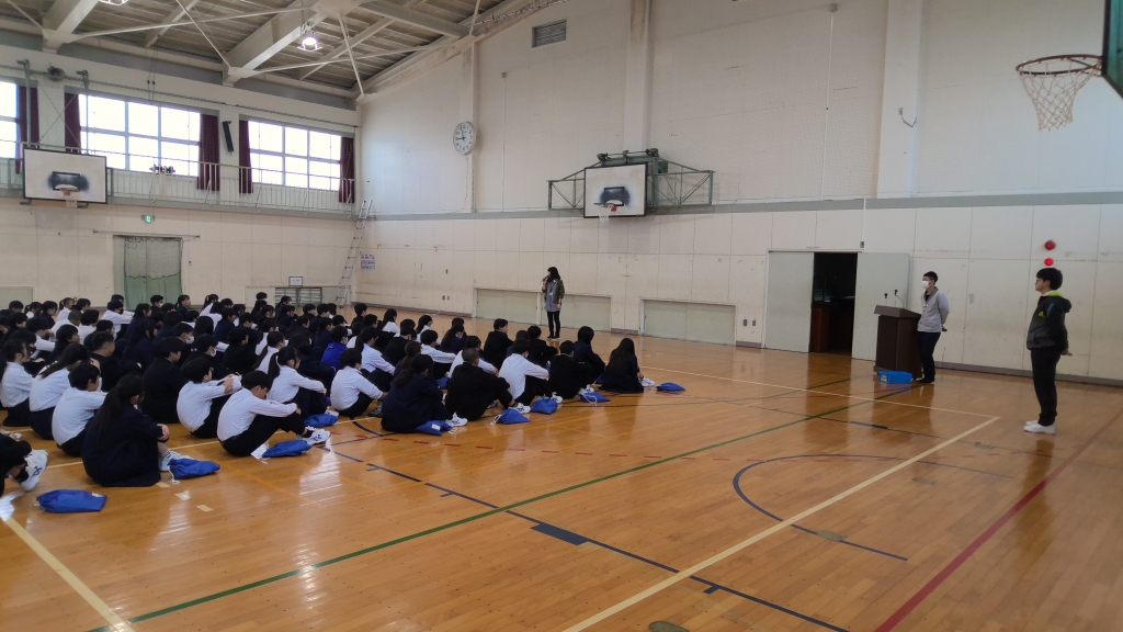 本日1限目に学年集会が行われました。新しく赴任された先生にお話をいただきました。