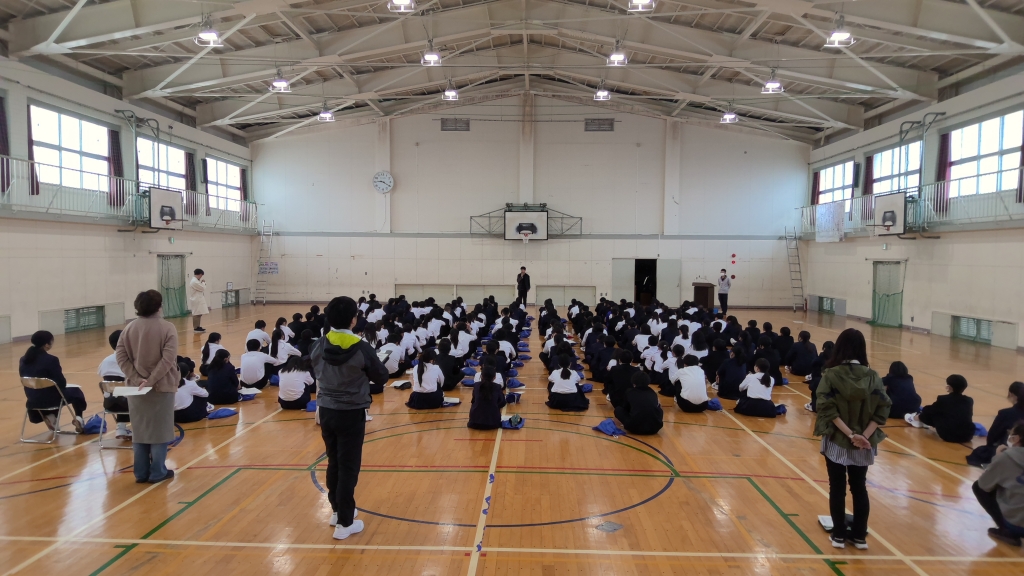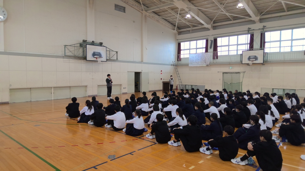校長先生から「①本(読書):知識をたくさん身につけましょう。②歌声:みんなで1つのことを取り組む協力する力。 ③ありがとう:あいさつを大事にして人とつながる力。」この3つを大切にしてくださいとお話しがありました。