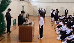 前期学級役員・専門員委員の認証式の様子です。