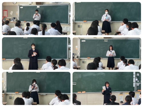 昨日、今日と朝読の時間に、先週、各班で選ばれた人が学級で、今学期、私が読んだおすすめの本を紹介しました。学級代表に選ばれた人は学年集会で発表し、学年代表が終業式で発表するという流れになっています。3年生の読書スピーチは説得力があり、さすがでした。
