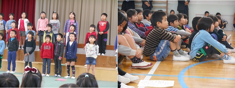 8日(土)は土曜授業でした。3限目の音楽集会では、ボイスアンサンブルにチャレンジ!グー・チョキ・パーのリズム打ちを楽しく披露することができました。他の2曲も美しく、元気よく歌うことができ、大成功でした。また、他の学年の演奏や合奏も真剣に聴いていて、とてもいい音楽集会になりました。 |