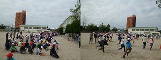 10月23日木曜日20分休みに全校で、手つなぎおにをしました。違う学年の子とペアを組み、子どもたちは元気に運動場をかけまわっていました。どの子も楽しそうに参加していました。 |