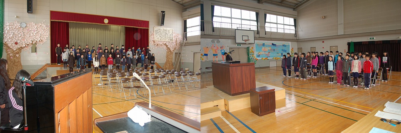その後の離退任式では、今年度で橋北小学校を離れる先生方のお話を聴き、精一杯の感謝の気持ちを込めて校歌を歌いました。