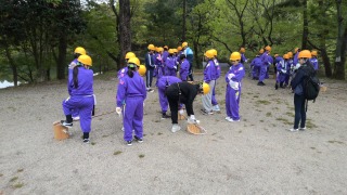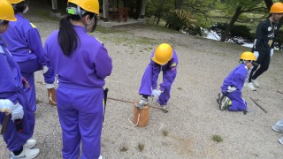 1日目の昼間の活動を終えました。里山保全活動の時間が予定よりも長くなったので、記念写真の時間はカットになりましたが、一人前の木こりになって、大人びた笑顔満開!?