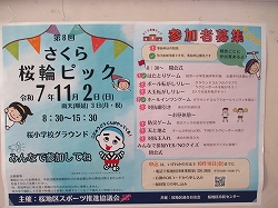 続いて広報委員から、11月2日(土)と3日(日)に行われる地域の行事紹介がありました。明日は、4年に一度の地域の大運動会「さくら地区桜綸ピック」が桜小学校であります。また、日曜には桜台小学校で桜台地区の文化祭が行われます。本校からは音楽部と有志生徒による合唱があります。13:00から桜台小学校で合唱発表をします。時間があればぜひ練習の成果を聴いてください。