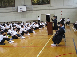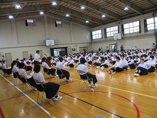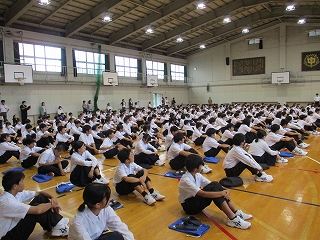 6限目に体育館で立会演説会を行いました。