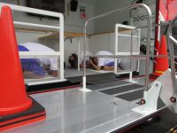 また、胸骨圧迫ならびにAEDの使い方を教えていただいたり、地震体験車に乗せていただいたりと、実際に体験することができる時間もありました。