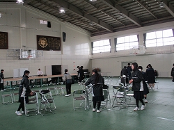 今週は卒業式ウイークです。午前中2年生が卒業式のための会場設営をしてくれました。改修された体育館で、シート敷き、掃除、椅子だし、舞台設営など一生懸命やってくれました。明日から3年生の卒業式練習が始まります。
