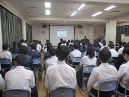 本日13:20から視聴覚室で説明会を実施しました。内容は中学校生活の説明と講演会の2本立てでした。また、今回教育委員会「みんなのブカツ推進室」をお招きして、学校の部活動が今後どうなるのかも説明いただきました。
