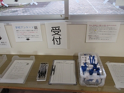 技術室ではスリッパ・体育館シューズと通学かばんの物品販売を行いました。