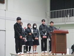最後に、地域ボランティア「やっとこ屋」への感謝状贈呈です。日頃から学校環境整備に協力をいただき、全校生徒を代表して生徒会から感謝状を手渡しました。