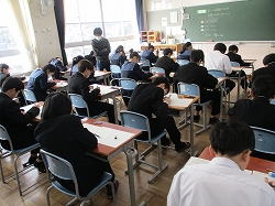 昨日から2日間の日程で3年生の三者懇談会が行われています。今回は、県立高校後期選抜の受検校を決定します。教室では保護者も交えて進路について真剣に話し合う姿が見られました。懇談後は、図書室でWEBでの出願手続きです。受検校が決まり、あとはそこに突き進むだけです。春はもうすぐです。
