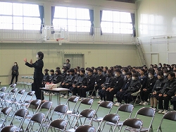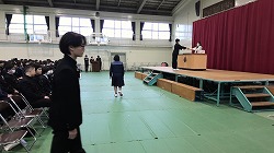 本日3年生は、いよいよ卒業式に向けた練習を開始しました。お辞儀の仕方や、卒業証書の受け取り方など、一つひとつの所作を丁寧に何度も確認しながら、式当日にふさわしい姿を目指して真剣に取り組む姿が見られました。慣れないことに緊張しつつも、卒業への意識をより高めることができました。