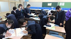 練習後には、卒業アルバムが配布されました。ページをめくるたびに、中学校生活のたくさんの思い出がよみがえり、思い出話に花を咲かせたり、クラスメイトや友達同士でメッセージを書き合ったりと、笑顔いっぱいの時間が教室中に広がりました。