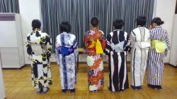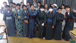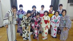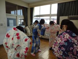 どのクラスも普段着る機会の少ない浴衣に心を躍らせ、着付け後はタブレットを使い、お互いの写真を取り合う姿も見られました。