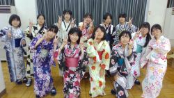 その後自分たちで袖を通し、帯結びにもチャレンジしました。