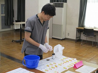 本年度、桜中学校の学校薬剤師を務めていただく、緑調剤薬局の北折先生に来校いただき、尿検査を実施しました。尿検査は、腎臓の病気を早期発見することを目的に実施されています。また、学校薬剤師は照度検査や水質検査など多方面の検査をしていただき生徒の学習環境を見守り、学校にアドバイスをいただいています。