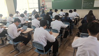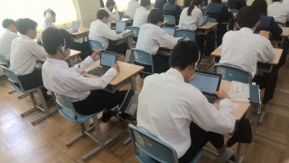3年生は全国学力・学習状況調査が行っています。桜中学校では延べ3日間にわたり調査をします。本日は英語の学力調査(読むこと、書くこと、聞くこと)と生徒質問紙に答える学習状況調査を実施しました。