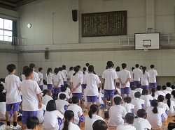 卒業式が終わり、今日から2年生が桜中の最高学年となりました。1限目体育館の片付けをする前に、朝学年集会を行いました。卒業生が座っていた席に全員が座り、昨日の卒業式を振り返りました。そして、最上級生になるということ、来年どんな卒業式を迎えるのかを考える機会を持ちました。真剣な表情で先生の話を聞く姿がありました。