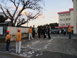 朝から生徒のみなさんを迎える準備をしました。校内点検と雪かき、通学路の点検、そして登校前には農道や学校手前の三差路付近など要所要所に立ち登校指導を行いました。