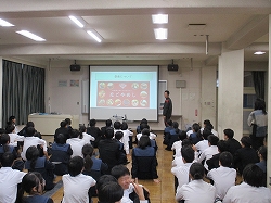 本日は体育館の改修工事のため始業式もオンラインで行いました。この1月に着任した1年生の英語の先生を紹介し、先生からもお言葉をいただきました。新しい出会いの始まりです。