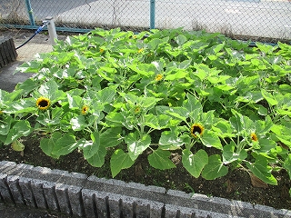 花壇のひまわりが