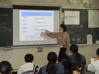 2年生の社会科授業では、地理の学習中。雨温図を読み取りながらいろいろな気候の特徴を、協働的に意見交換しながら学びを深めています。