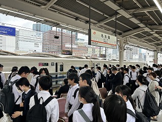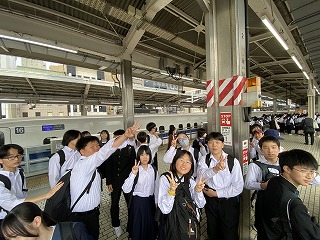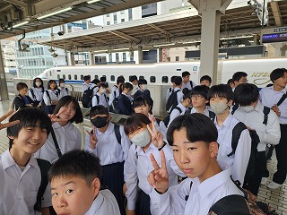 生徒昇降口には、14日から始まった生徒会主催の挨拶強化週間のお知らせが流れています。廊下での挨拶の声も増えてきました。また、2年生のフロアには3年生に向けてのリーダーからの言葉が書かれていました。