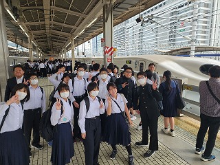 生徒代表による花束贈呈後、離任される音楽の先生の最後のピアノ伴奏校歌を合唱しました。