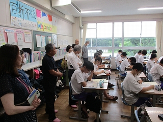 まずは、2限目の授業の様子を参観していただきました。委員の方からは、落ち着いて授業を受けている姿や、タブレットを使った授業に評価をいただきました。理科の授業では子供たちが行っている実験に委員の方が興味を持ち質問する姿がありました。