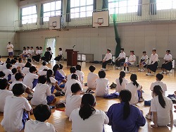 卒業式が終わり、今日から2年生が桜中の最高学年となりました。1限目体育館の片付けをする前に、朝学年集会を行いました。卒業生が座っていた席に全員が座り、昨日の卒業式を振り返りました。そして、最上級生になるということ、来年どんな卒業式を迎えるのかを考える機会を持ちました。真剣な表情で先生の話を聞く姿がありました。