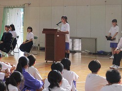 修了式の前にいじめ標語の入選と柔道大会の表彰伝達式を行いました。