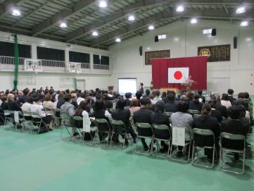 入学式の様子。校長からの式辞や担任等の紹介を行いました。