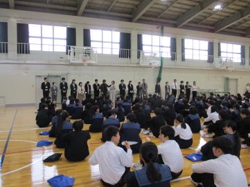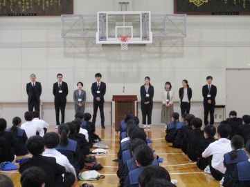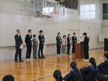 <着任式>・・・桜中教職員の新しい仲間です。生徒会より歓迎の言葉がありました。