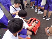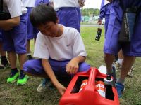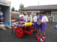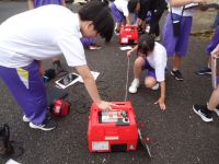 倉庫にどんな備品があるのか、もしものときに地域の方々とどう助け合っていくかなどのお話の後、実際に発電機や可搬ポンプの体験をさせていただきました。