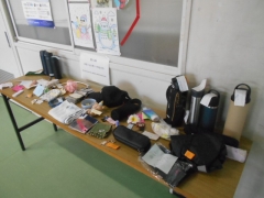 生徒玄関付近(PC教室前廊下)にて、2学期の拾得物の展示を行っています。