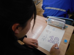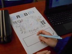1限目は始業式があり、2限目からは学活でカウントダウンカレンダーや今年の漢字を作成しました。