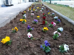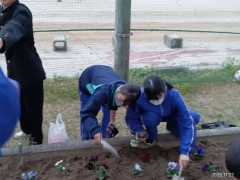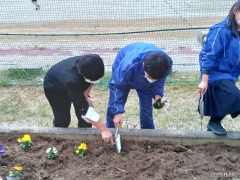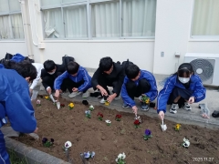 花壇にパンジーとチューリップの球根を植えました。今後、綺麗に咲き誇るように、しっかりと手入れしていきます。