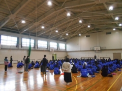本日1限目、2年生は体育館で2学期まとめの学年集会を行いました。